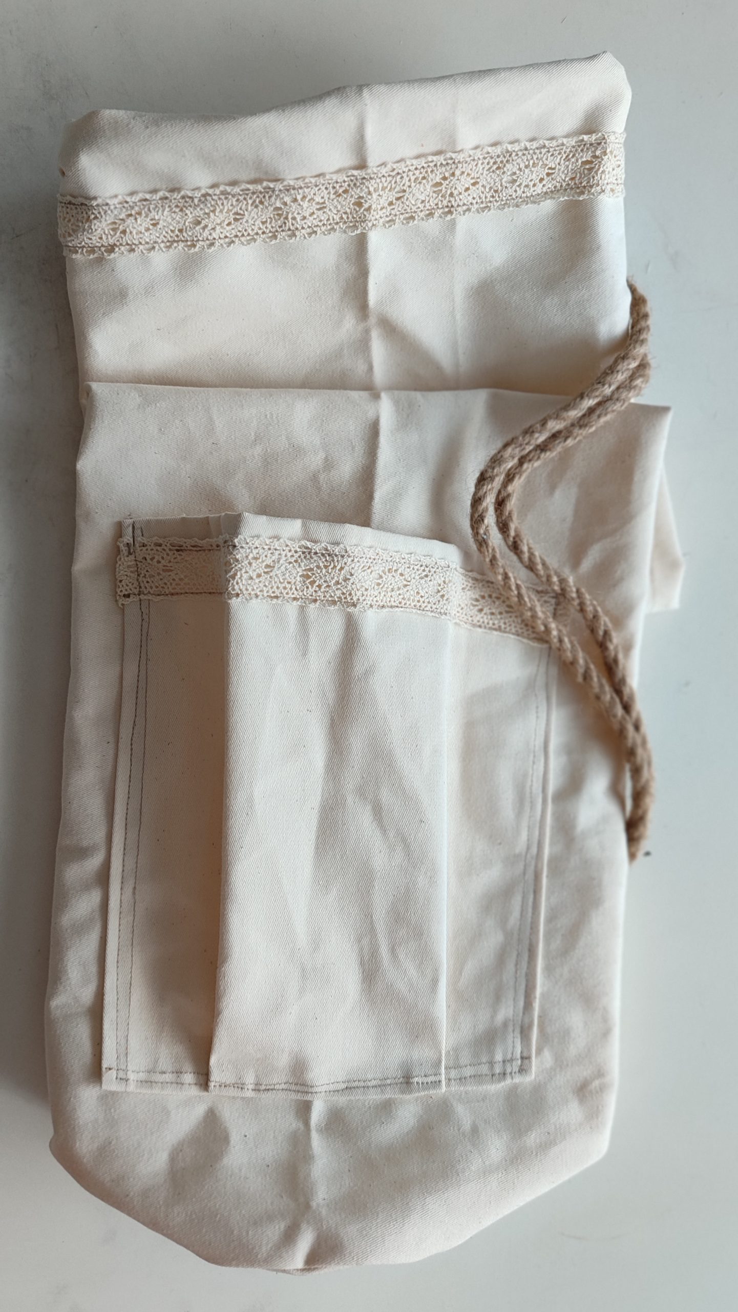 Pokrowiec na matę 72×25 cm. Gruba tkanina bawełniana z ozdobnym motywem koronki. Na jutowej linie. Zapytaj o dostępne warianty. Wzór unisex. Można nosić ją zarzuconą na ramię lub jak plecak na oba ramiona.